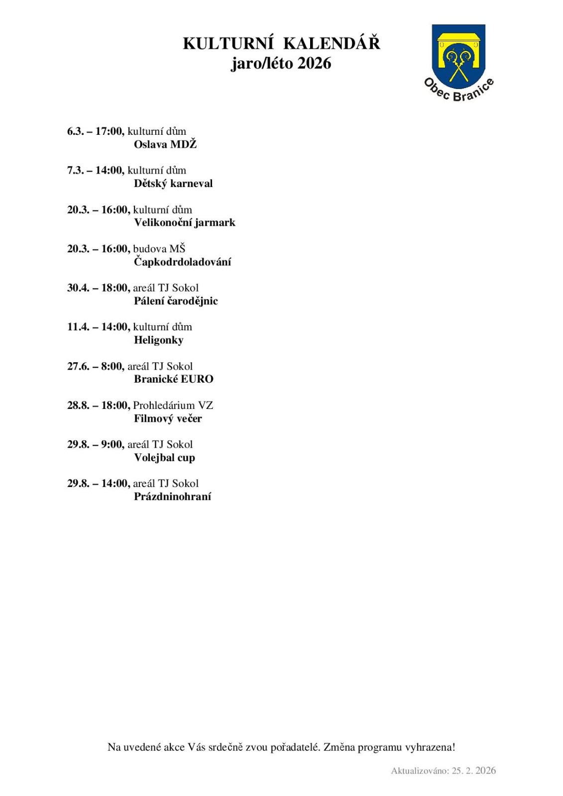 Kulturní kalendář